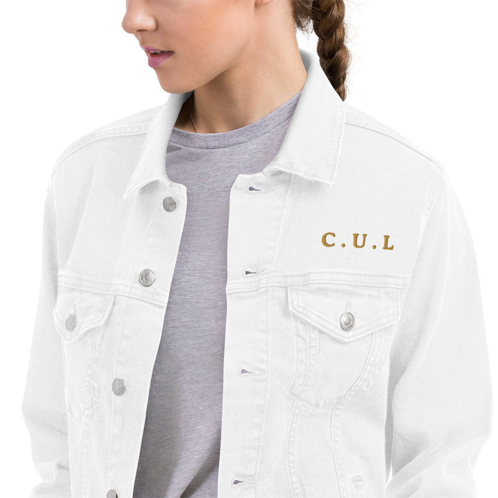 Interlocking C.U.L ( Crown Up Life) Embroidered Denim Jacket